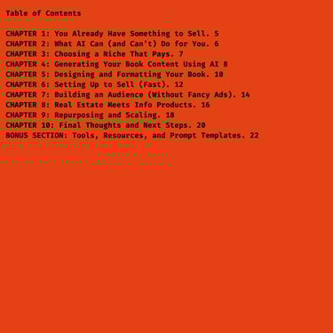 LEARN HOW TO BUILD A SIMPLE, SCALABLE SIDE INCOME BY CREATING AND SELLING E-BOOKS—EVEN IF YOU'VE NEVER WRITTEN ONE BEFORE. THIS PRACTICAL, EASY-TO-FOLLOW GUIDE SHOWS REAL ESTATE AGENTS HOW TO LEVERAGE CHATGPT TO CREATE DIGITAL PRODUCTS THAT SELL WHILE YOU SLEEP.